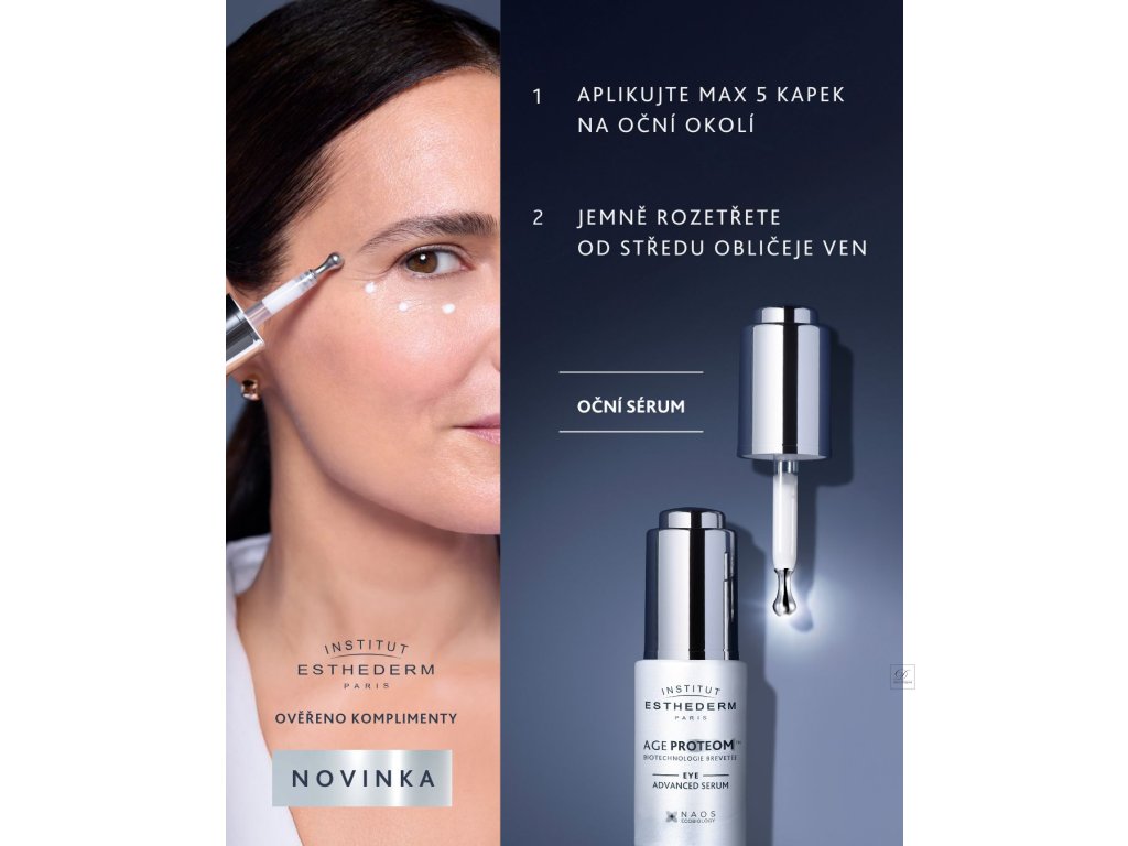 AGE PROTEOM™ Pokročilé oční sérum je inovativní oční sérum, které chrání proteiny pokožky očního okolí a bojuje proti všem projevům stárnutí, jako jsou vrásky, ochablá víčka, tmavé kruhy a otoky. Díky patentované technologii AGE PROTEOM™ a tetrapeptidu s liftingovým účinkem poskytuje okamžité výsledky: +67 % liftingového efektu po jednorázové aplikaci. Po měsíci jsou oční víčka dvakrát otevřenější a kontury očního okolí omlazené.
